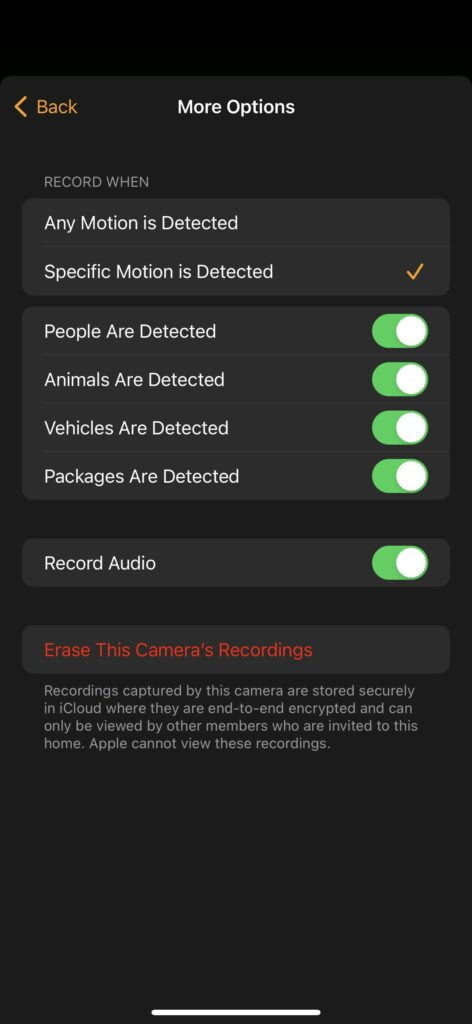 Unfortunately, the Aqara app falls a bit short with advanced motion detection. There isn’t any. No people, animals, vehicles or packages.