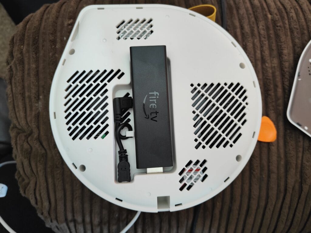 When I realised I had to do this, my hopes of installing third-party dongles were piqued but I was sadly disappointed when I realised the recess for the dongle is perfectly sized for the BenQ QS01 and no other device. I am sure you might be able to find something that can squeeze in there, but my Fire TV Stick 4K Max did not.