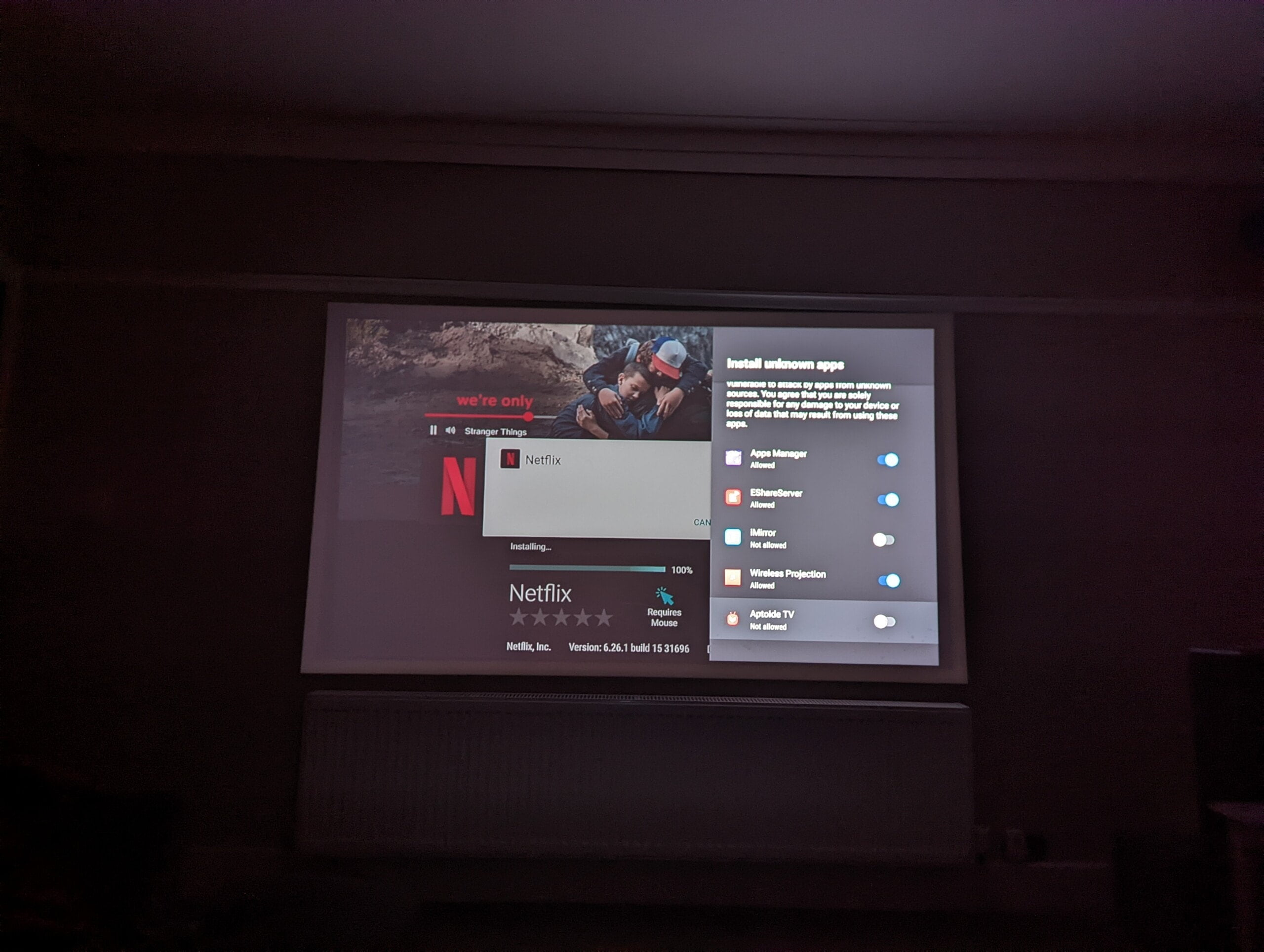Sideloading Netflix typically means you are reduced to a lower resolution as it won’t comply with the DRM for 4K. However, this projector only does 720P, which is less of an issue.