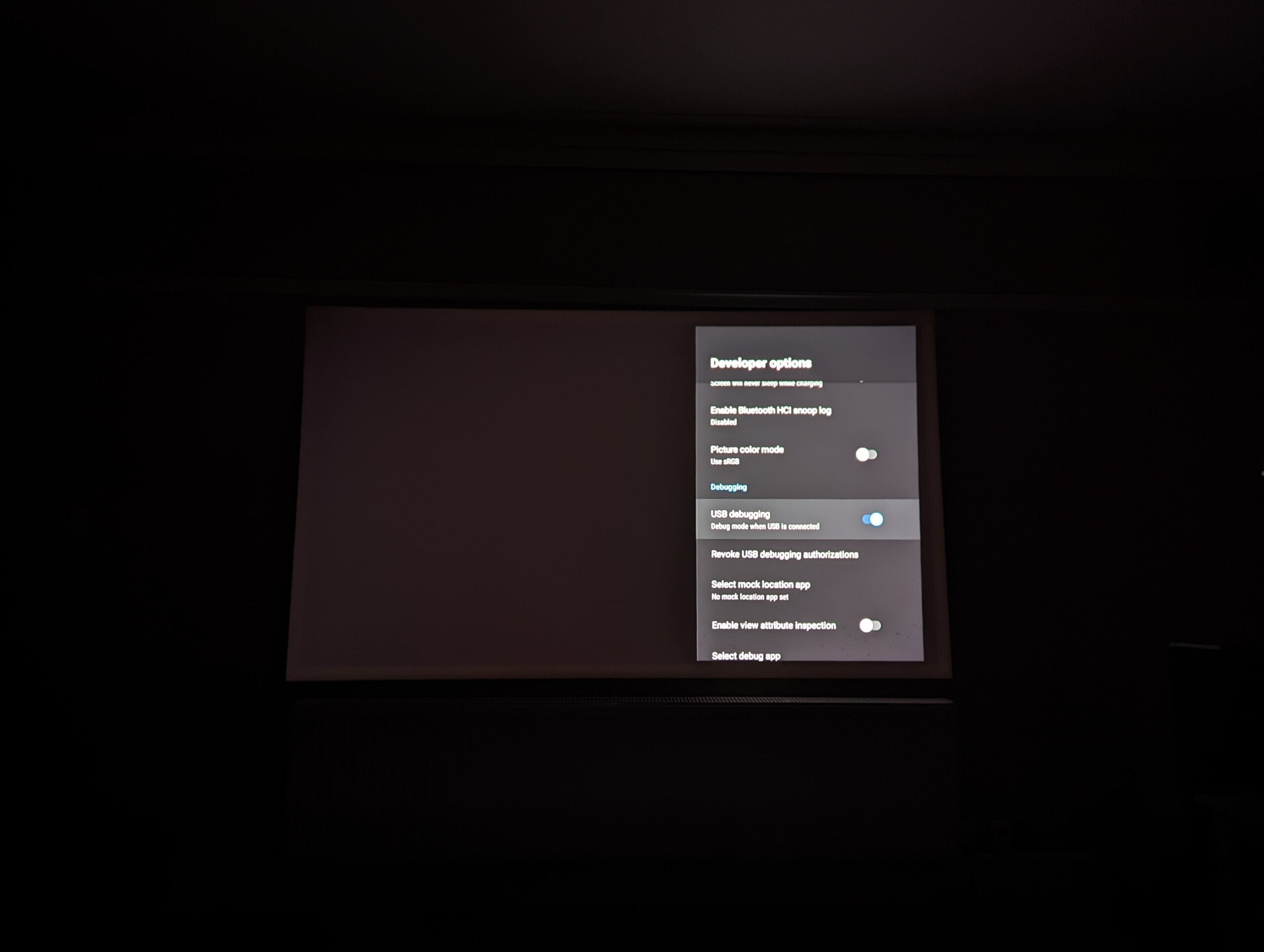 For Zank, this needs to be installed on the projector and phone. On the projector, you also need to enable USB debugging via the developer options. You do this by going into settings, the about menu, scrolling down to the build number, and hitting select 7 times. A notification should pop up saying how many more times you need to press it. Then when enabled, you can go back into settings and enable USB debugging via the developer menu. It is a bit of a faff, but it works well.