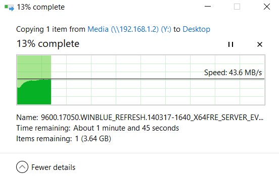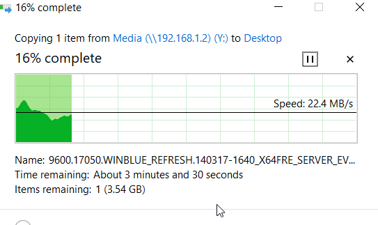 Local file transfers matched the above speeds with me being able to achieve 22 to 43MB/s transferring from my server to the NVME drive of my laptop across multiple rooms around the house (not the garage).