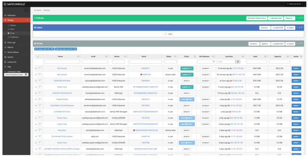 - Remote Management: SafeConsole allows for remote provisioning, deployment, thorough auditing, and much more.