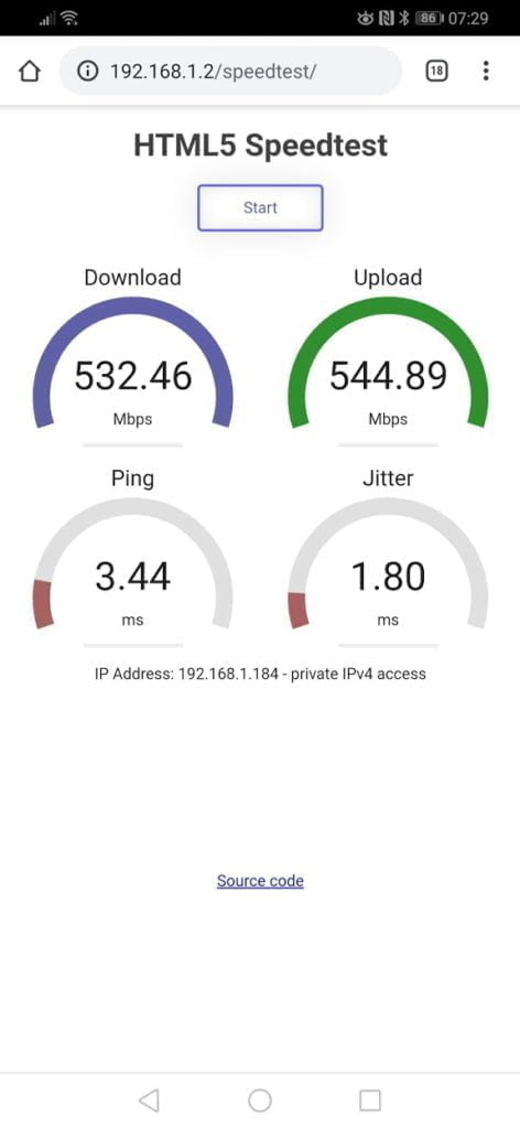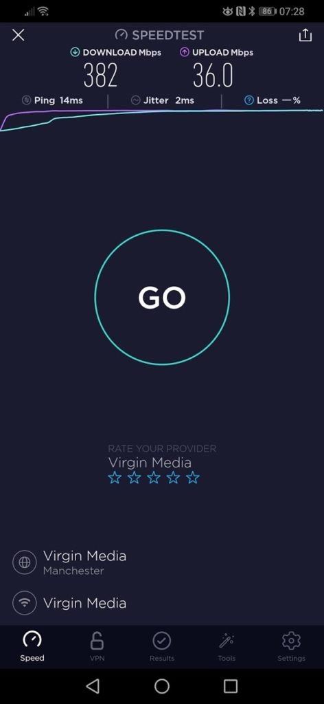 Setting either device up in access point mode predictably changes the performance considerably, allowing each access point to perform to its maximum speed with no drop in speed between the AP and main router. Using Speedtest.net again, this meant that in the same room as an access point I was able to achieve over 380mps on my Virgin line. Using jperf and a speed test script on my server, I was comfortably able to accomplish over 530mps or around 65MB/s. Finally, a basic file transfer test using a large ISO, I was again able to sustain around 60MB/s.