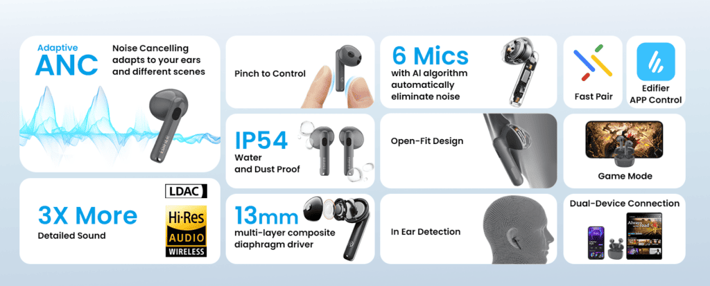 The centrepiece of the W320TN is its AI Multimodal Adaptive System. This intelligent system combines a blend of sounds and algorithms to ensure robust noise cancellation, high-fidelity sound quality, and sharp voice calls. One of the key issues with many earbuds is air leakage, which can disrupt sound quality. Edifier seems to have tackled this problem head-on through careful analysis and testing. They’ve set parameters that strike a balance between noise isolation and awareness of the real world, ultimately enhancing the user’s immersive experience.