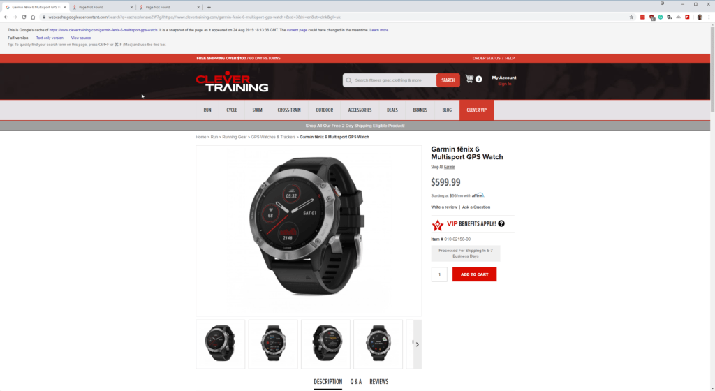 This well-known company, often promoted by DC Rainmaker, has listed just the normal Garmin fēnix 6 priced at $599.99. The page has been taken down, but Google Cache still has the listing
