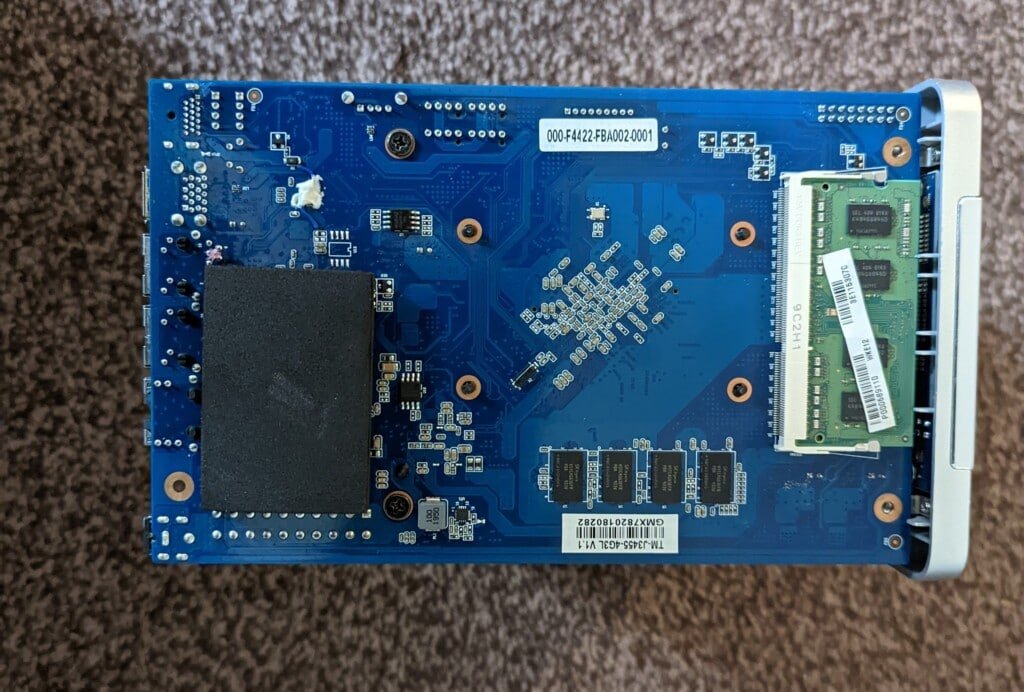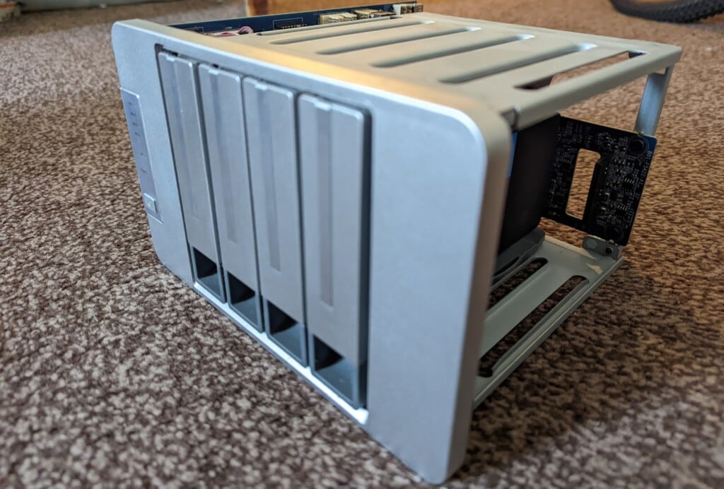 Just like the TerraMaster F4-421, this four-bay NAS actually has a 5 drive slot, the only issue is the 5th drive cage is blocked off. For me, I have used this 5th bay for the SSD, at the moment, it is tempting fate dangling loosely, unless I knock the NAS off my shelf, it should be OK for now. Eventually, I will find some way to physically secure it in place.