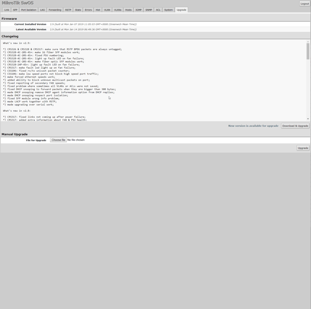 There are two models of this switch, one with a basic SwitchOS and the more expensive RouterOS model. I opted for the cheaper option, of course.