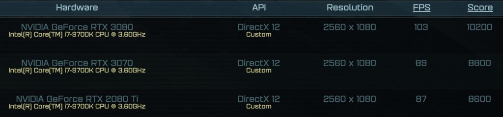 In a separate leak roggame released some AoTS benchmarks, again, showing impressive with the RTX 3070 actually beating the flagship RTX 2080 Ti of the previous generation on the lower resolution tests by 1 or 2 fps
