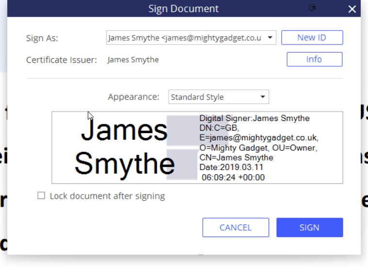 I have to sign a lot of contracts, both as a blogger and also when I do web development with clients. Printing things off, signing it, and then scanning it is a chore. With this, you can apply a digital signature in a secure manner. The official description from Adobe states: