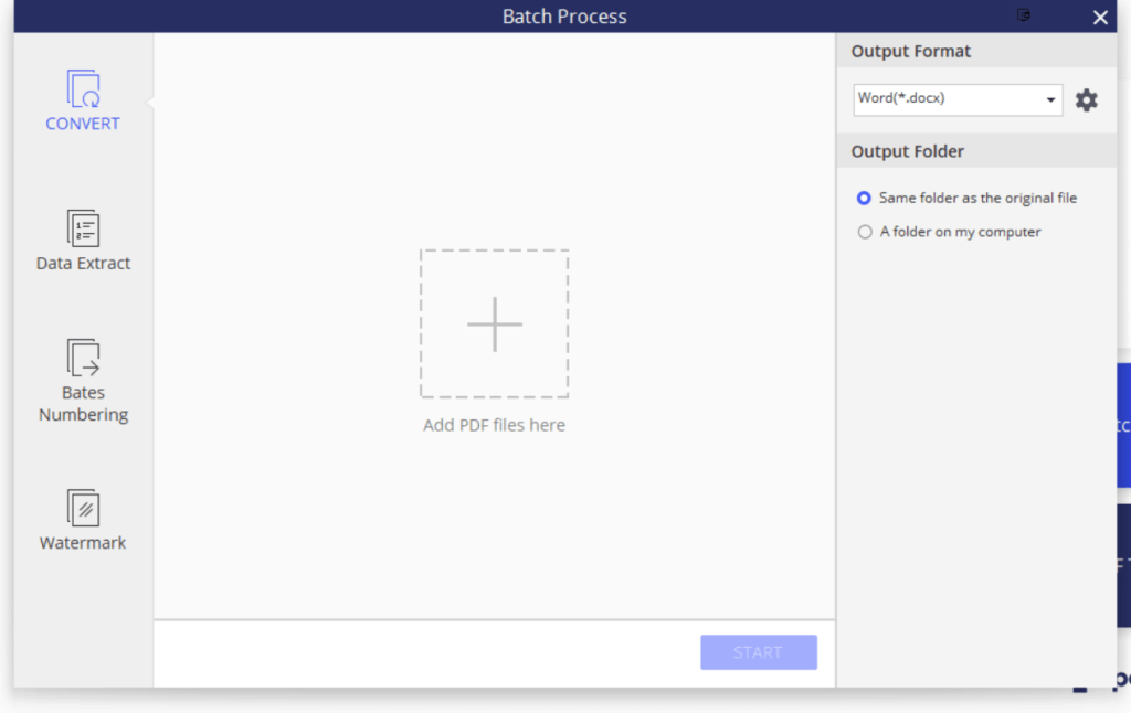 Finally, there is also a batch conversion option allowing you to add watermarks, convert formats and merge PDFs.