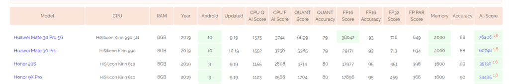 The AI Benchmark also provides a very interesting result, but how useful AI performance is maybe up for debate. The HiSilicon Kirin 810 gets 35130 which is higher than any other chipset other than the HiSilicon Kirin 990 models.