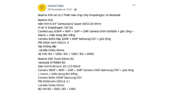 However, this now looks inaccurate with the Realme X50 now being tipped to be the Qualcomm Snapdragon 735 5G based phone.