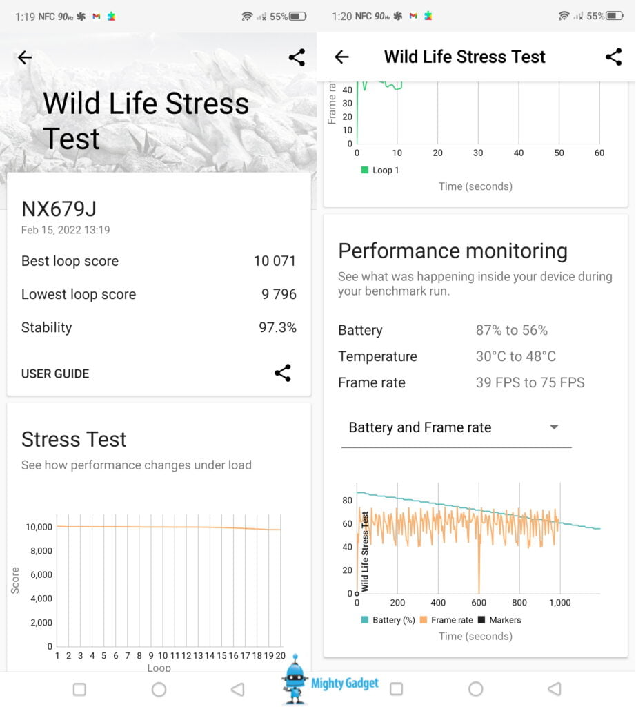 This stability score is an example of how Redmagic tunes their phones differently. They let them run at maximum performance, but this has a negative effect on battery.