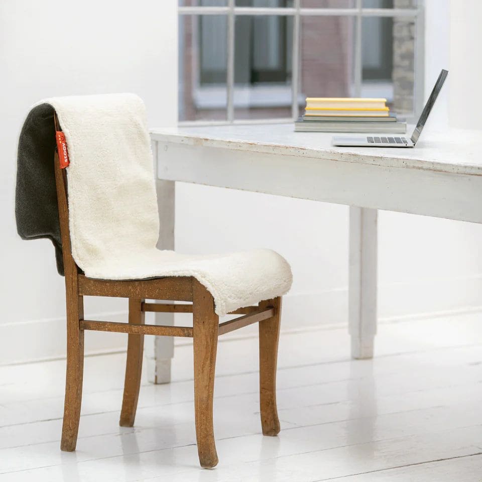 During colder months, I normally sit on a plug-in electric throw on my office chair, but it just flops over the sides and gets caught on things. With this, it fits perfectly, covering the seat and back. The battery holder is thoughtfully placed at the top of the blanket so this hangs over the back of the chair, avoiding the discomfort of sitting on it.