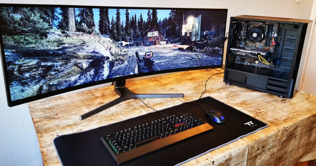At the time of building this, my current monitor is the Samsung C49RG90 49-inch Super Ultrawide. Priced at £1200 it is not exactly the appropriate monitor for this build, but it was what I had at the time.