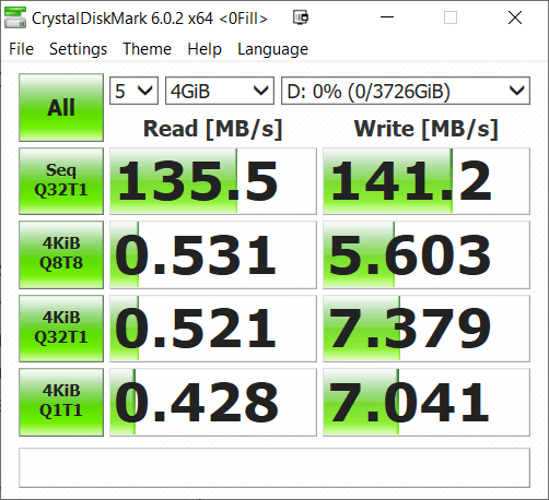 Performance is good, with the limitation being that a maximum speed a mechanical drive can achieve. It runs at 5,400rpm which is standard for 2.5” external drives.